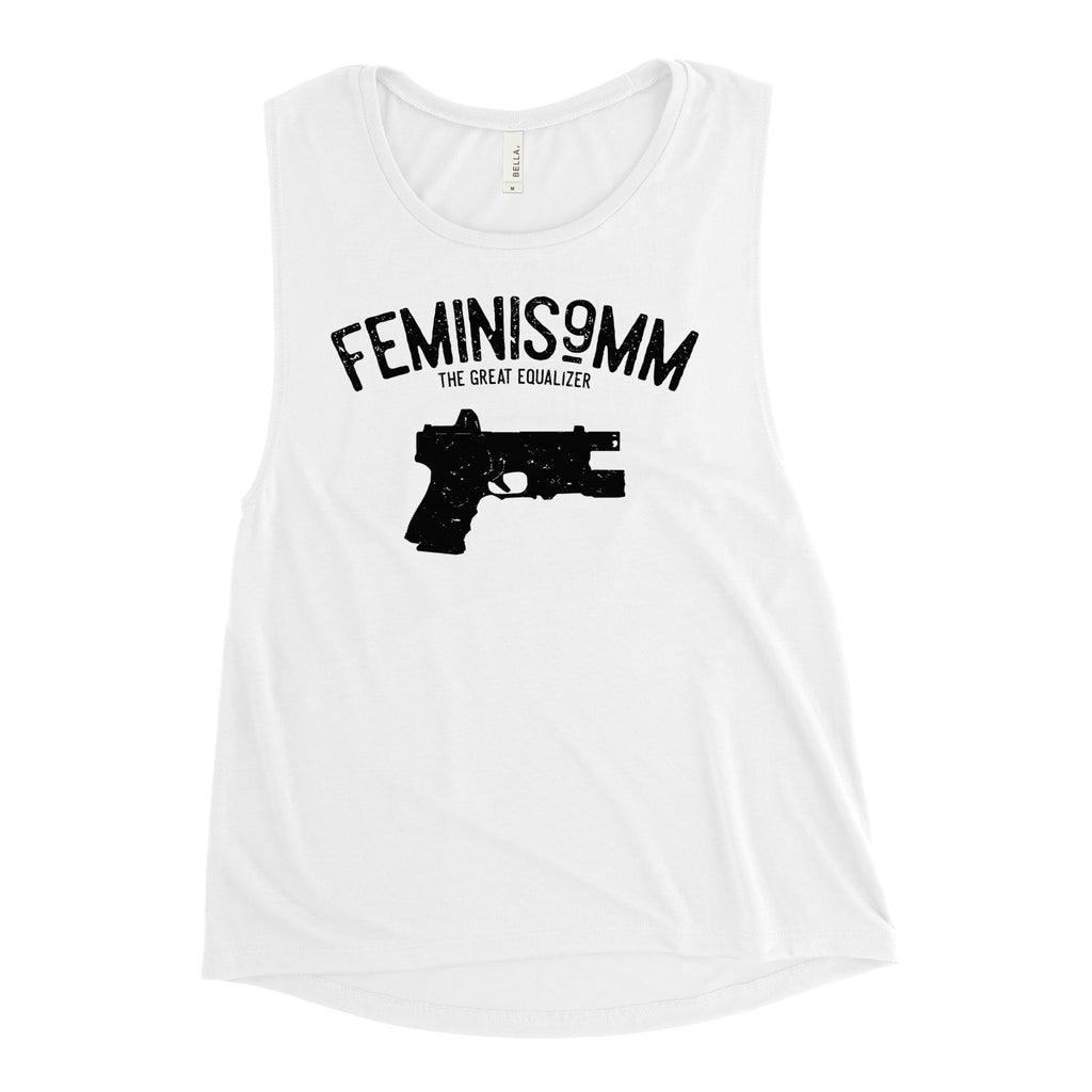 Our take on Feminism and Women's empowerment Racerback Tank. Feminis9mm The Great Equalizer.